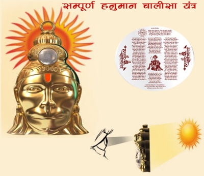 The amazing design of the locket with a beautiful like crystal in the middle of the forehead is a noticeable feature. This devotional pendant can brings unbelievable changes to various happenings in your life. A gold plated pendant molded in the shape of the face of Hanuman ji with a 24 carat gold plated chain, for a longer tolerance. You can put it as a pendant or can carry it in your purse with yourself, anywhere you go. This movability enables the Yantra to provide a protective shelter around you, so that, you can stay away from the destructive & aggressive spirits. . This special reading lens is positioned exacting over the Tilak of the Hanuman ji’s face pendant. Put the pendant near your one eye and you can view the whole of Shri Hanuman Chalisa.